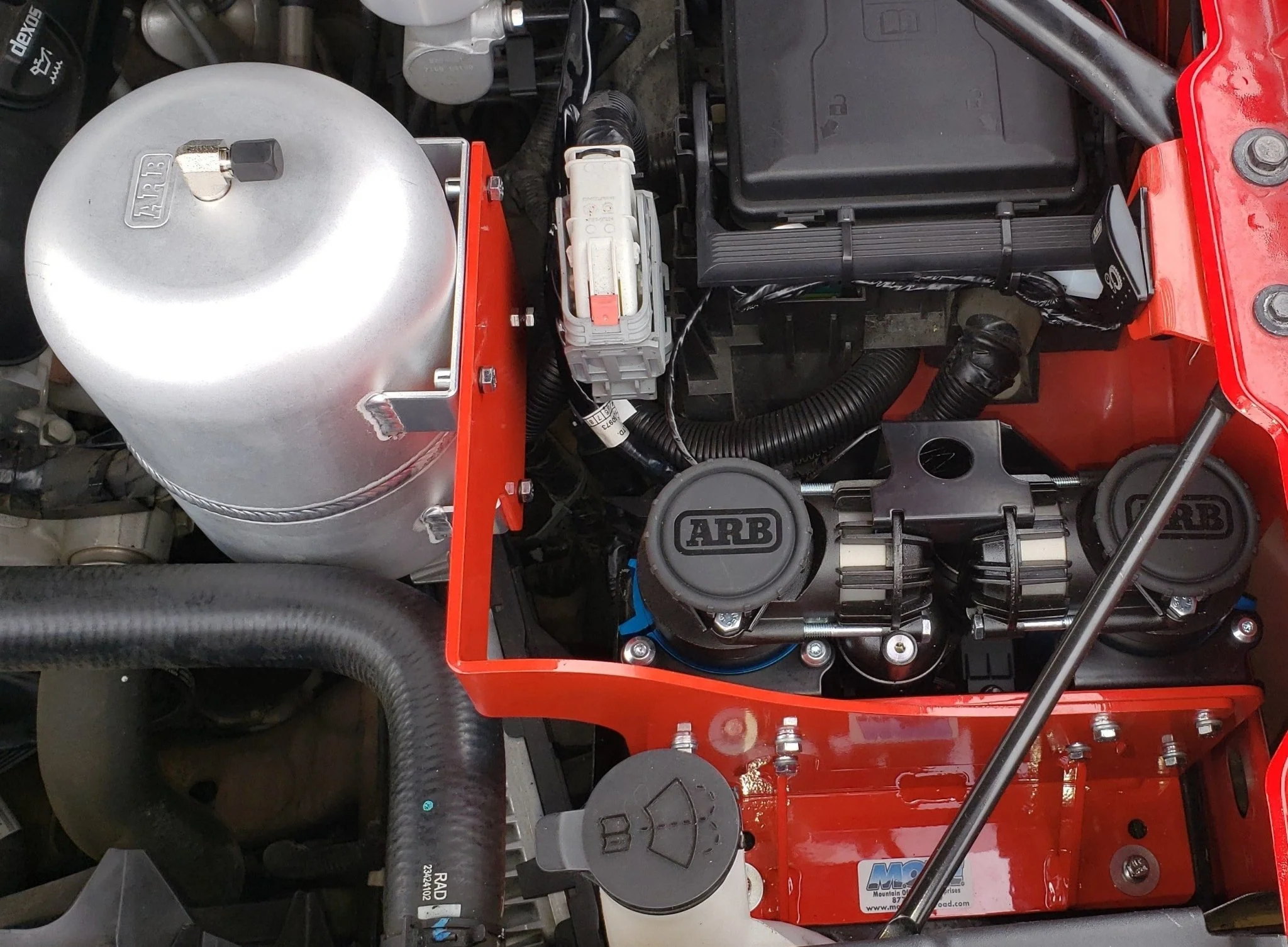 Now that you have your new ARB Dual Air Compressor (CKMTA12) you may also need a place to mount your ARB tank. Under the hood is the best location for this. It takes up no valuable cargo space and yet is easy to get to.